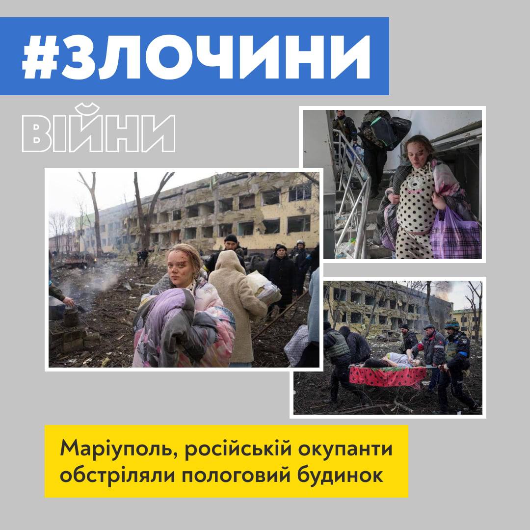 Результати терористичного бомбардування пологового будинку у Маріуполі 9 березня.