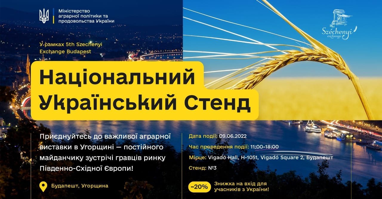 Міністерство аграрної політики та продовольства України спільно з Асоціацією «Дунайська Соя» організовує Національний Український Стенд на 5th Szechenyi Exchange Budapest.