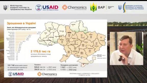 📌4 травня 2023 року директор Південно-Української філії УкрНДІПВТ ім. Л. Погорілого Володимир Малярчук прийняв участь в онлайн-семінарі присвяченому розвитку зрошення та осушення за участі Міністра аграрної політики та продовольства України Миколи Сольського.