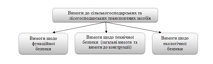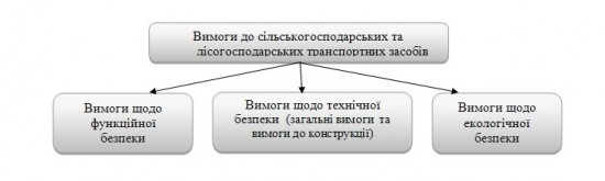 Рисунок 4 – Систематизація вимог до сільськогосподарських та лісогосподарських транспортних засобів за групами